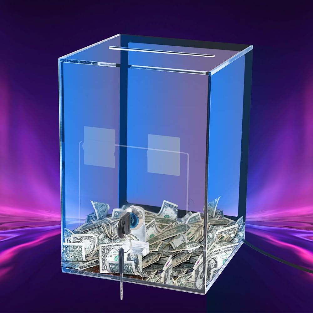 4. The product includes: 1 acrylic tipping jar with light, 1 remote control, and 1 key. Our donation box does not include batteries and requires a light strip to connect the batteries 5. Exquisite gift selection: You can give it as a gift to your barista, bartender, and restaurant friends, and they will appreciate your choice of such a unique gift"