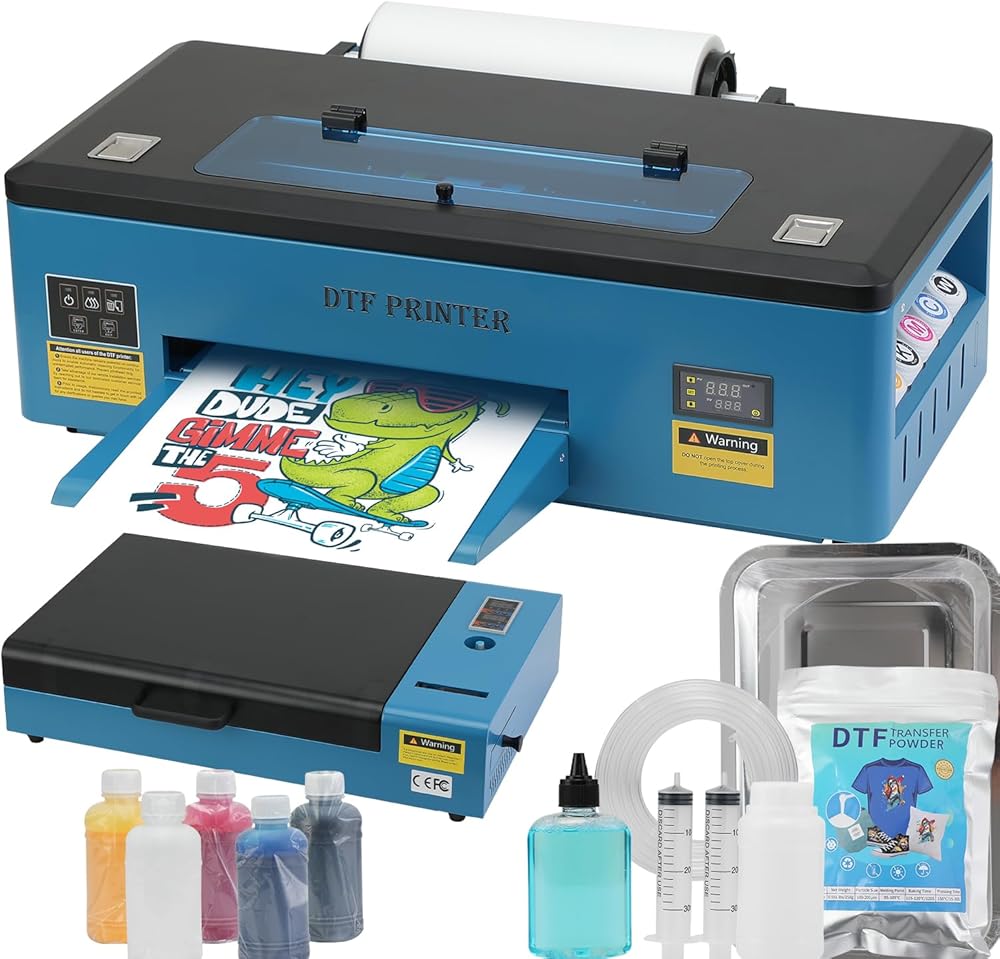 FAFAIR A3 L1800 DTF Printer with White Ink Mixing System & Auto Clean, DTF Printer Bundles Blue, High-Speed DTF Transfer Machine with 1 x Roll of Film, 5 x 250ml Ink and Powder (L1800+Oven+Software)