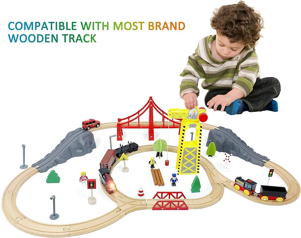 Motorized Train for Wooden Track, 3Pcs Train Toy Set for 3 4 5+Years Old Boy Girl Toddlers, Battery Powered Train Compatible with Thomas & Friends, Brio and Chuggington