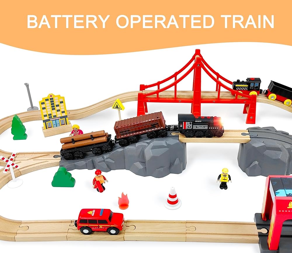 Expanding your railway collection with vibrant train set and tunnel, aim to inspiring creativity and imagination, improving motor skill and spatial logical thinking ability. Can be perfect gift at Christmas or over holiday season for creative toddlers, specialized designed for ages 3 and up.