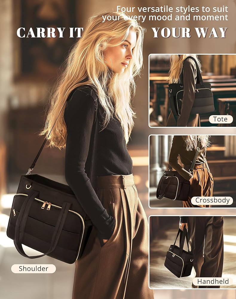 【Multi-Purpose Tote Bag】 Not just a Bible cover tote, this versatile bag doubles as a laptop tote bag for women, teacher bag, or college book bag. Perfect as a work bag, office tote, or travel bag, offering stylish functionality for church, school, office, travel and daily use.