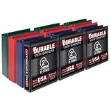 Besides storing documents, a binder organizer is also an ever-present accomplice of office goers, students, and homeowners looking to be more productive and organized. These 2 inch black D-Ring DURABLE presentation binders feature a clear overlay on the front, back, and spine giving full control and flexibility over customization of presentations, organizational projects, office reports, class projects, and more. The cover is made from black polypropylene, offering increased strength and durability when compared to PVC. Polypropylene is also non-stick, which prevents transfer of ink or lifting copy when materials are inserted in the cover or placed inside. This makes it easy to reuse and update the covers and spines as often as you'd like. Polypropylene is tightly sealed over THICKER rigid chipboard made from 100% recycled fiber with at least 75% post-consumer content.Our durable boards ( .094") are thicker than other durable binders (.088") on the market. Our 2 inch black dring binders with double boosters can hold up to 475 sheets (8.5”x11” size) with ease compared to a round ring two inch black binder that only holds up to 425 sheets. 3 Rings are mounted on the back lid which allows pages to lay flat and prevent wear and tear of the documents. Such a construction also adds to a sleek, clean appearance with no-rivet spine. Also includes two clear inside horizontal pockets for additional storage and organization of loose documents and non-punched papers. Each pocket provides enough space to hold notes, photos, business cards, or full-size pages that will be punched later.