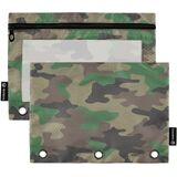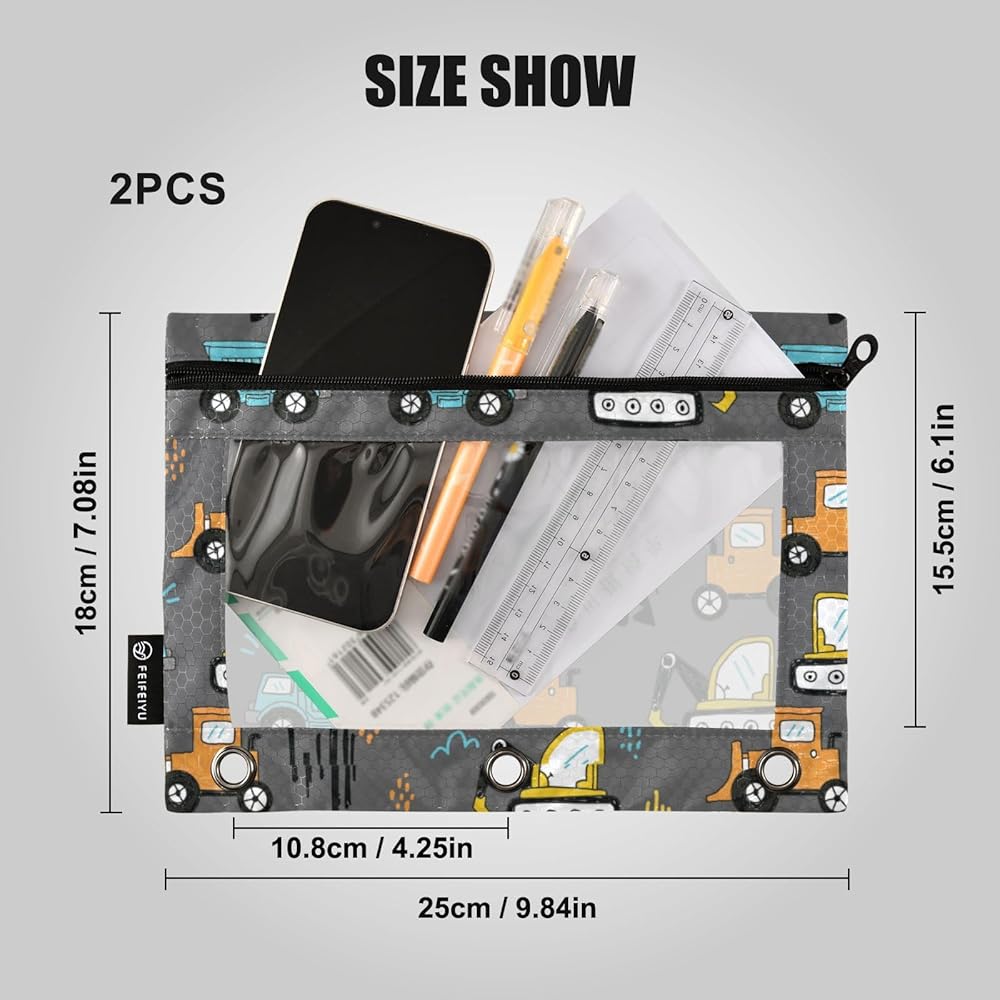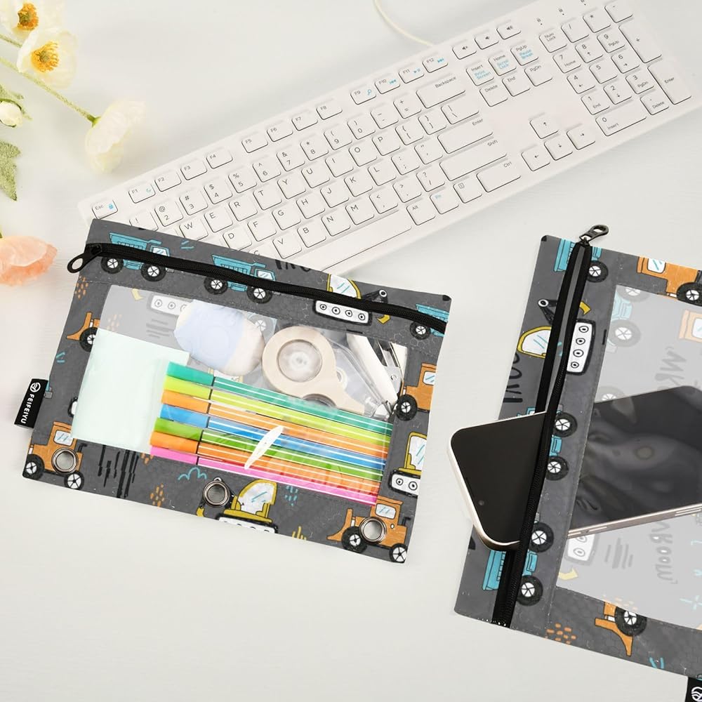 Pencil Pouch for 3 Ring Binder, 2 Pack 3-Holes Zipper Pencil Pouches, Clear Window Pencil Case for Binder, Big Capacity 3 Ring Binder Pencil Bag with 3 Reinforced Grommets