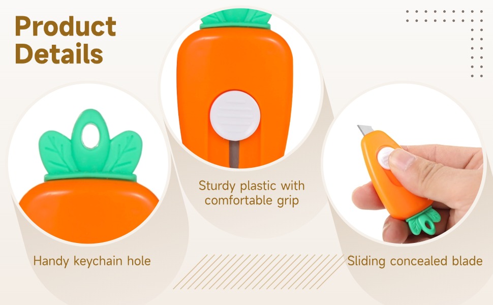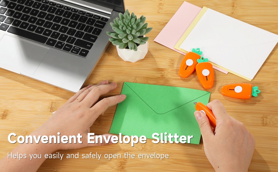Carrot-Cute & Desk-Ready: Bright orange with green leaf detail stands out—adds a playful touch to your workspace and makes mail-opening more fun
