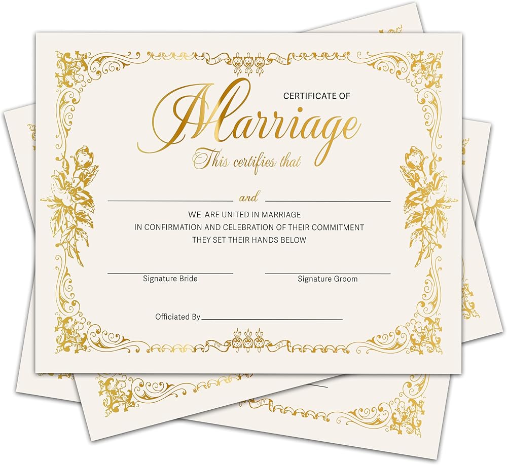 Marriage Certificates with Gold Foil Edges - 8 x 10 Inches Blank Certificate Paper Wedding Certificates Blank Marriage Certificate for Wedding Ceremony Proposals - A10