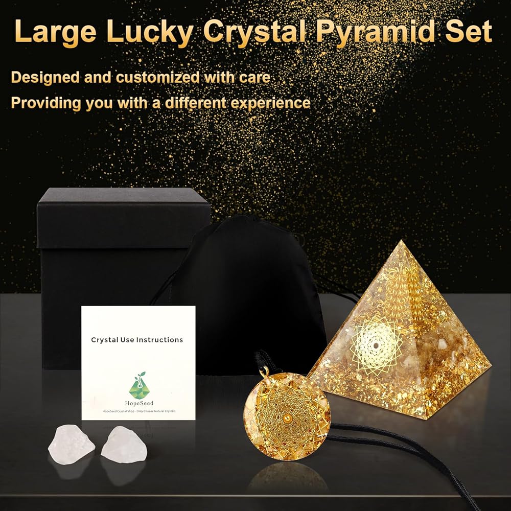 Hopeseed Large Orgone Crystal Pyramid for Positive Energy, Orgonite Natural Citrine Stones Healing Crystals Pyramid Set for Attraction Wealth and Prosperity Reduce Stress Chakra Healing Meditation