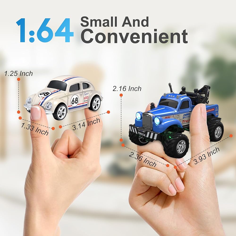 - Ultra-Portable Fun: The pocket rc truck toy car is built with1:64 scale, lightweight design for play anywhere, indoors or outdoors