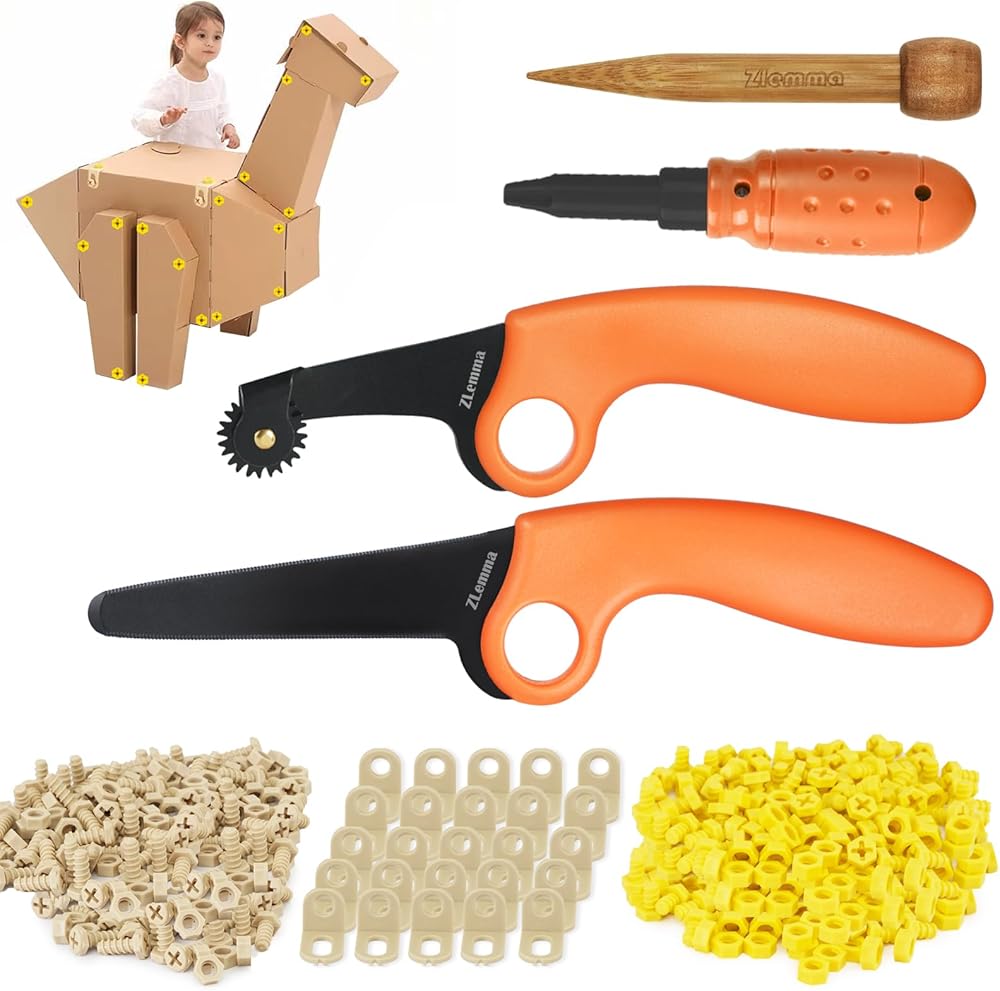 【Comprehensive Tool Kit】 Our ZLemma Cardboard Construction kit boasts an impressive collection of 163 tools, covering everything from cutting, punching, and assembling, to fastening. Enjoy the convenience of an all-in-one toolset that caters to all your corrugated cardboard crafting needs.