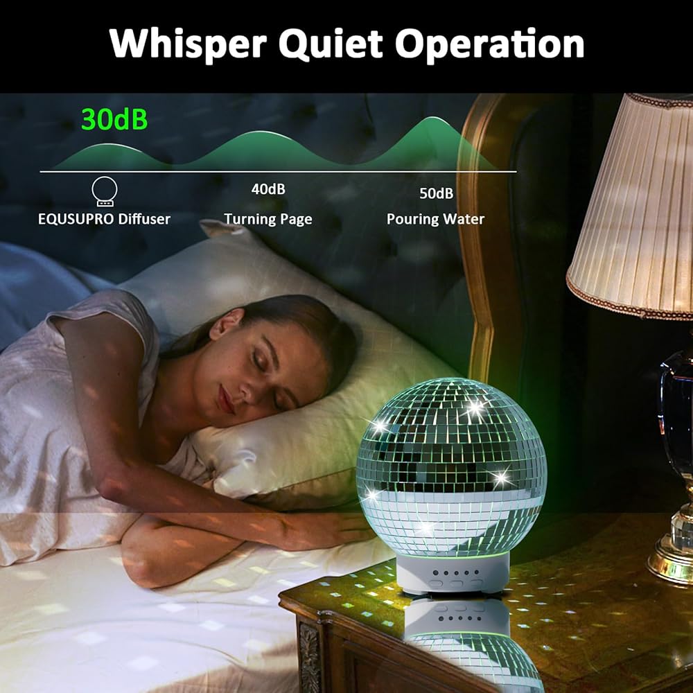 【Fun, Playful, and Stylish Design】: This rotating disco glass ball diffuser adds a touch of fun and playfulness to any room. Its unique design is perfect for parties, events, or simply brightening up your mood. When the light shines on the glass cover of this home diffuser, it creates dynamic and vibrant light spots on the walls, enhancing the ambiance.