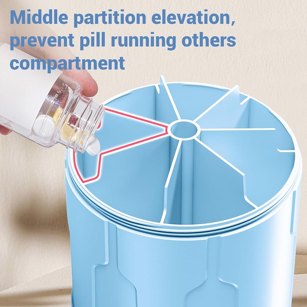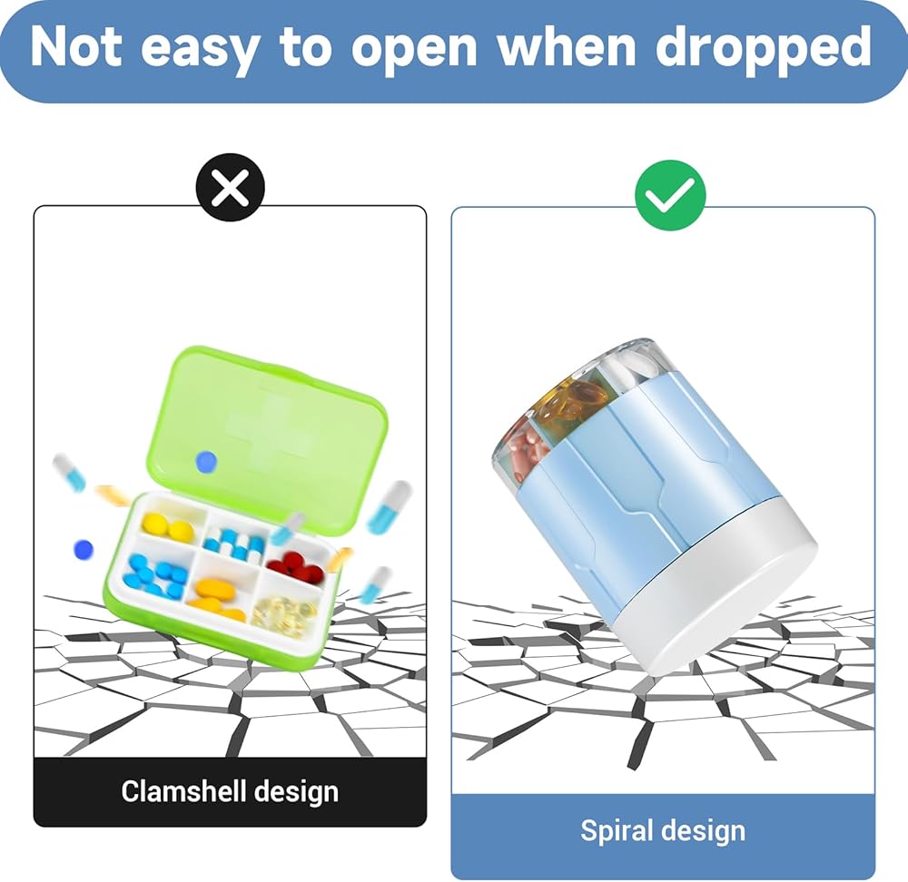 【Easy to Use & Open】- The bottom of the vitamin pill dispenser organizer is transparent and easy to identify. Medication organizer storage outer cover is rotary disk design. The inner layer is sliding and sliding to take medicine. Arthritis friendly, it can be cleaned with hot water before use.