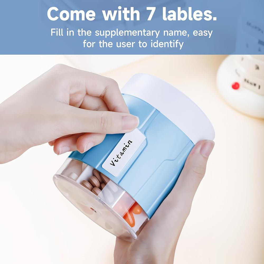 【Large Capacity】- Pill bottle organizer storage with 7 Spaces, keep supplement in one container, this pill storage the biggest feature is easy to store different health care product, like vitamins, fish oil, pills and other products together, each time can be stored.