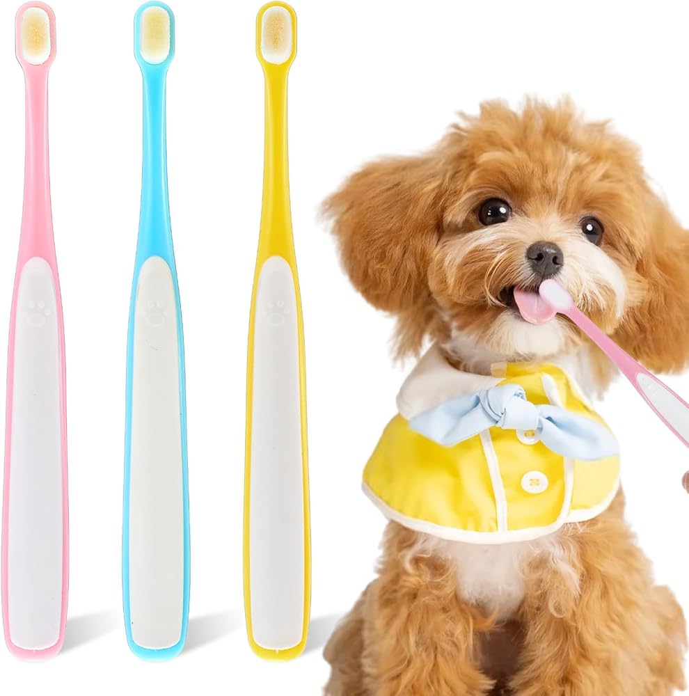 3 Pack Small Dog Toothbrush, Small Breed Cat Toothbrushes for Cat & Puppy, Utral Soft Bristles Deep Cleaning Mini Head Tooth Brush for Tiny Puppy Kitty