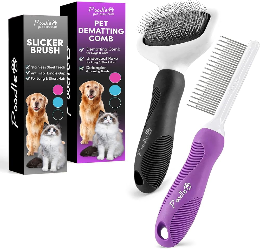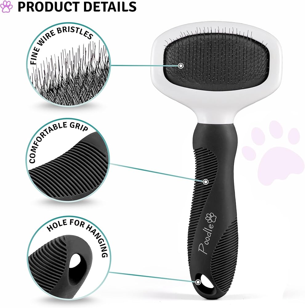 USE POODLE PET'S PET GROOMING TOOL ON DOGS AND CATS: The primary purpose of this slicker brush is to get rid of any debris, loose hair mats, and knots in the fur. It is rectangular in shape and has fine wire bristles packed tightly together. Each wire bristle is angled slightly to prevent scratches to the skin.