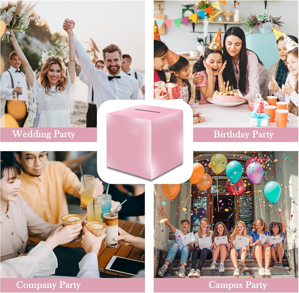 Spacious Gift Card Holder – With dimensions of 10"x10"x10" and a top card slot measuring 6.5"x0.75", it can hold dozens of greeting cards, money envelopes, and notes. Ideal as a reception card box or centerpiece.
