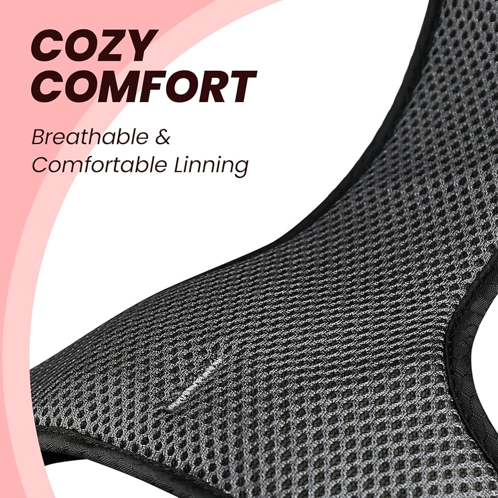 Built for Safety: A padded and reinforced traffic handle near the back makes it easy to grab and control your dog during training or emergencies, and helps lift them over obstacles with ease—adding safety and convenience to every outing. The 360° reflective webbing throughout the pet harness keeps your furry friend visible even in low light for safer nighttime walks. All buckles are made of new, non-recycled plastic—smooth, sturdy, and durable—for enhanced overall safety