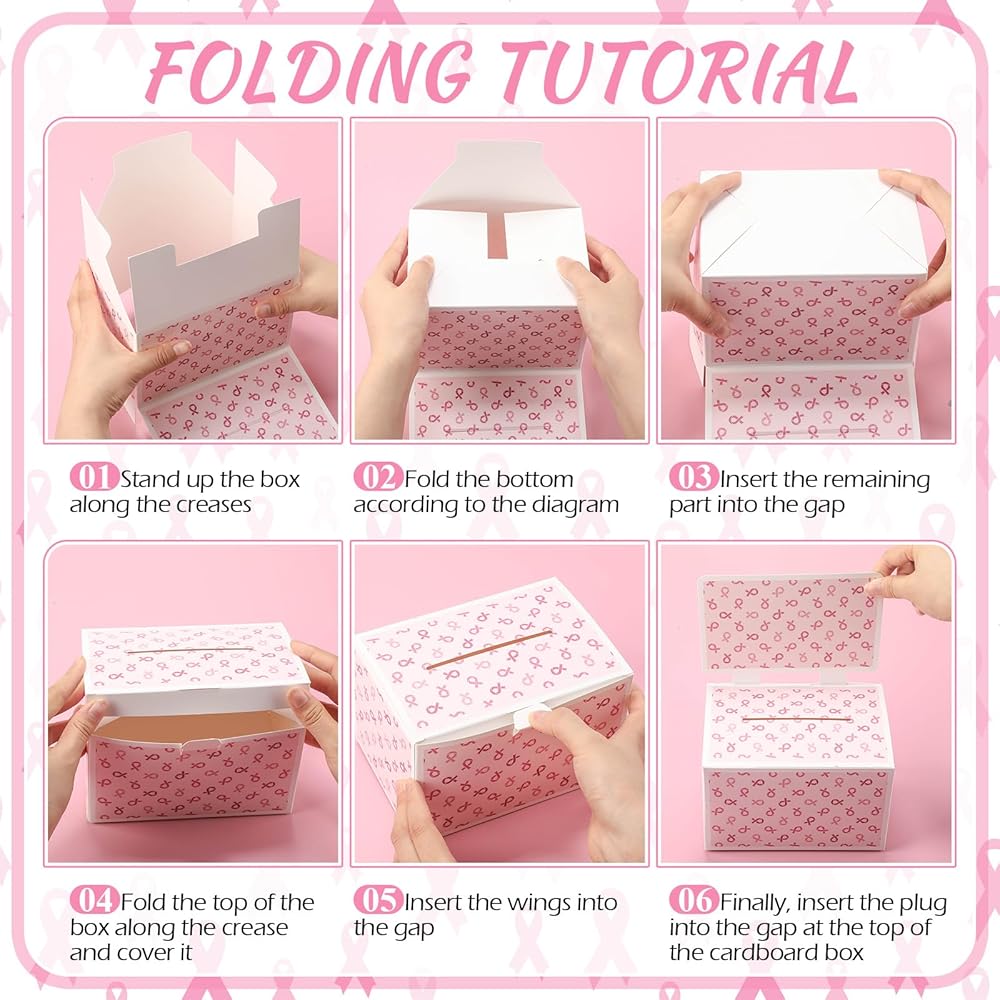 Our breast cancer awareness donation boxes are made of quality cardboard with clear patterns, lightweight and practical, easy to assemble and reusable. Sufficient quantity to meet the needs and replacements of breast cancer awareness activities