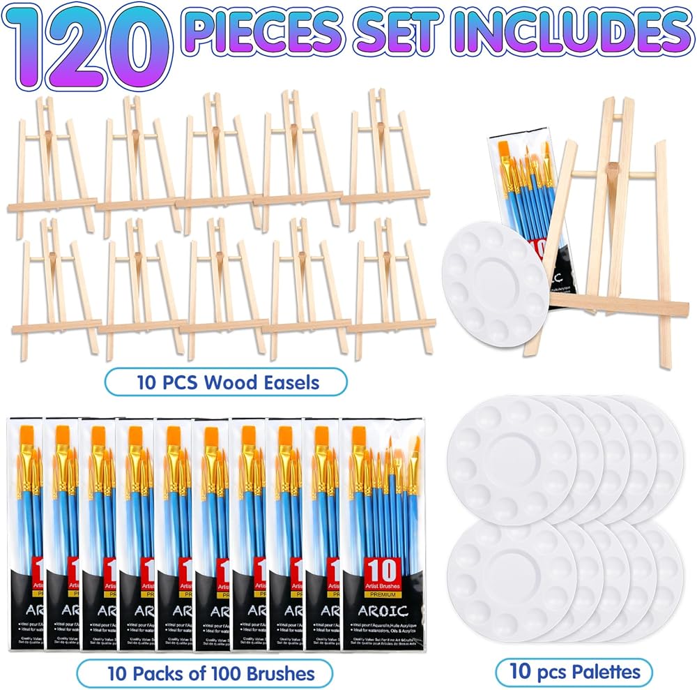 【Painting Set】: This Set Includes Six 7.7 "X 11.8" Inch Sturdy "A" Wooden Easels, 6 Packs Of 60 Multi-Purpose Brushes In 10 Sizes And Shapes And 6 White Paint Trays For Watercolor, Oil, Acrylic And Other Pigments. Perfect For All Levels Of Artists, Students, Teenagers, Children And Painters, This Is A Fantastic Gift Idea For Friends And Family Who Love Painting
