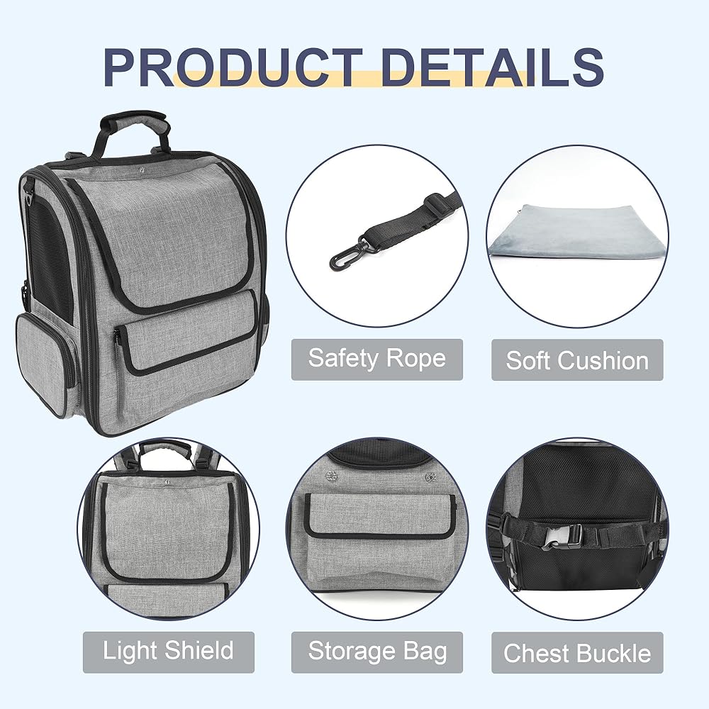 Safety & Comfort: Designed for secure and cozy travels, the cat back pack includes an integrated safety rope to keep your pet from escaping. The 5mm pearl cotton padding offers excellent shock absorption to protect your furry friend. Equipped with self-locking zippers, the cat travel backpack prevents accidental openings from the inside, ensuring extra security. Breathable mesh panels on the sides of the cat carrying backpack promote airflow, keeping your pet cool and comfortable.