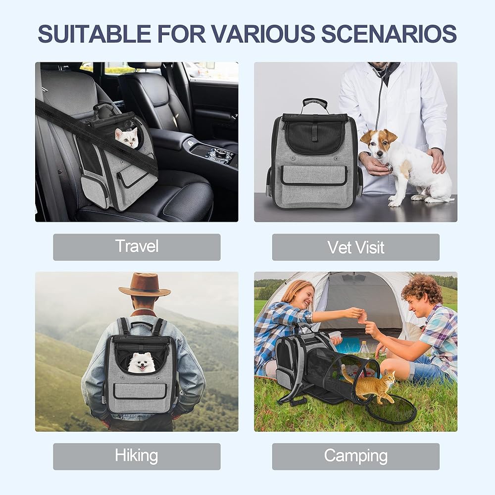 Versatile for All Occasions: This versatile pet backpack is designed for all occasions. Its expandable design provides ample space for your pet during travel, while offering secure and comfortable environment for vet visits. Whether you're hiking, camping, climbing, or attending pet meetups, our cat carrier backpacks ensures your furry companion stays safe and protected. No matter the journey, the cat hiking backpack delivers reliable comfort and security for your pet.