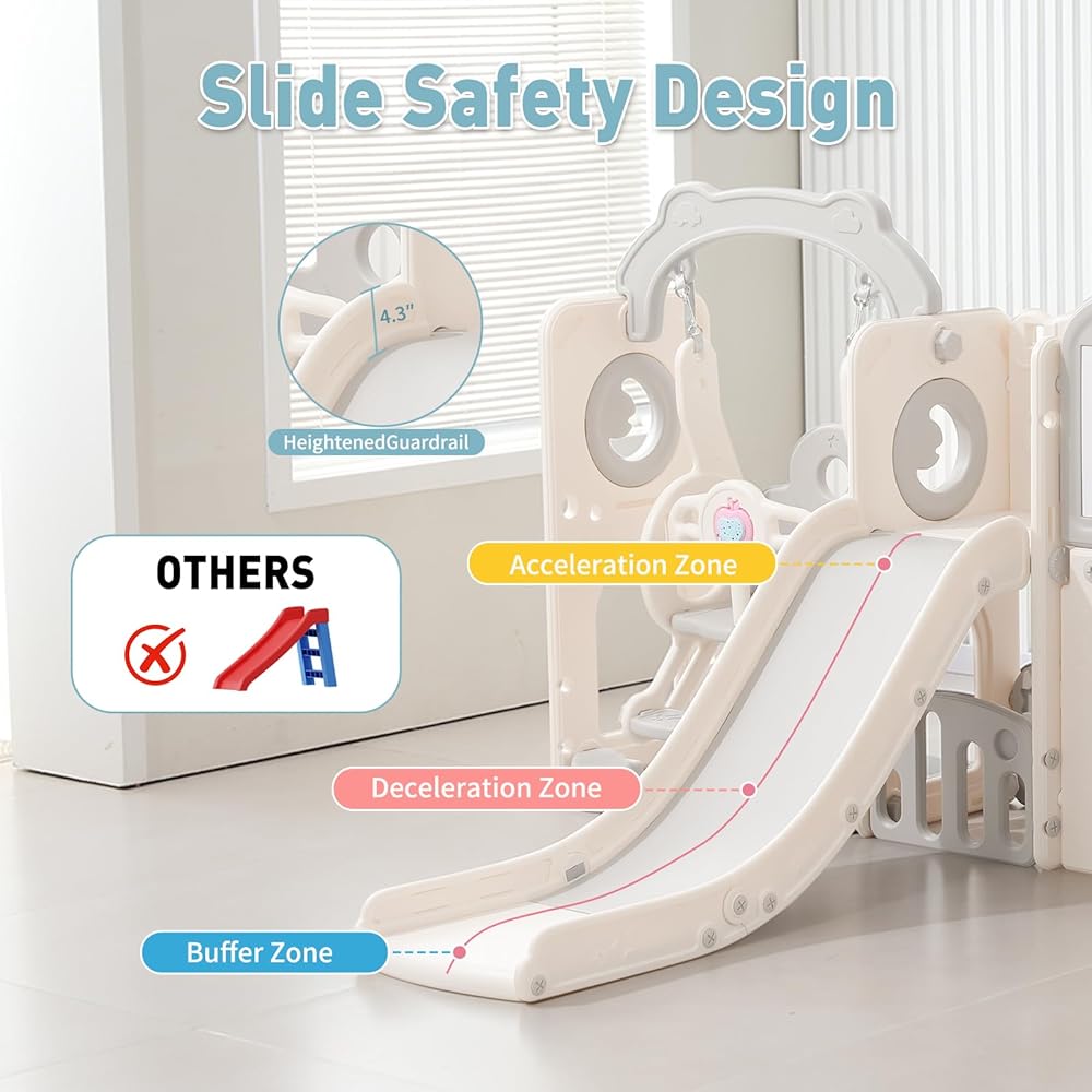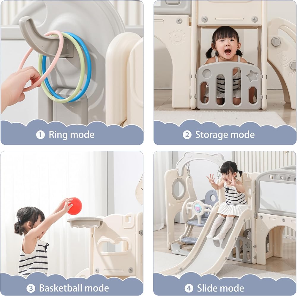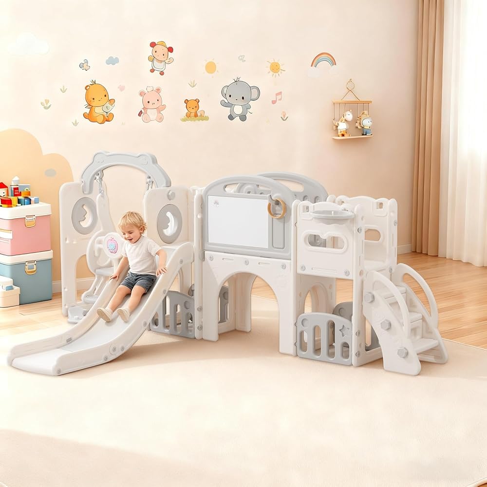 Toddler Outdoor Climber Playset with Basketball for Kids Ages 1 to 3 Years Slide and Swing Set 12 in 1 Playground Indoor Slide for Kids Durable Ecofriendly Plastic Backyard Playset White