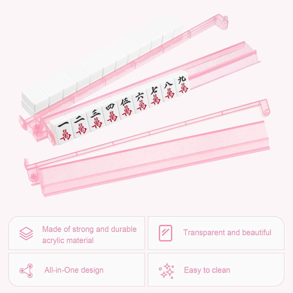 This set of clear acrylic mahjong racks with pushers is not just a practical item for American Majiang lovers but also an ideal gift. The sleek and modern design makes it suitable for gifting on birthdays, holidays, or any special occasion to friends and family who enjoy mahjong games.
