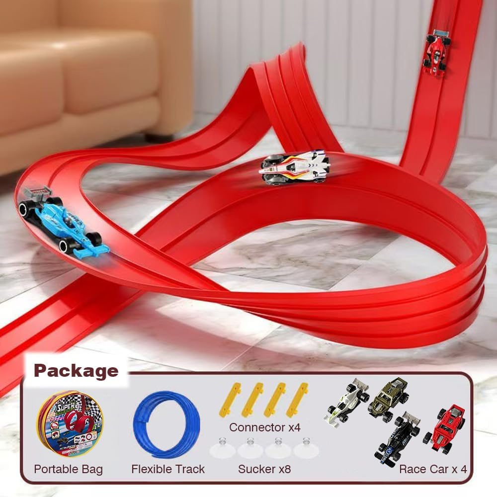 Flexible Race Track: Very easy to unroll and set up, gallant architects of speed.it's a portal to boundless creativity, ready to twist, leap,loop, and vault your steeds into legendary feats.