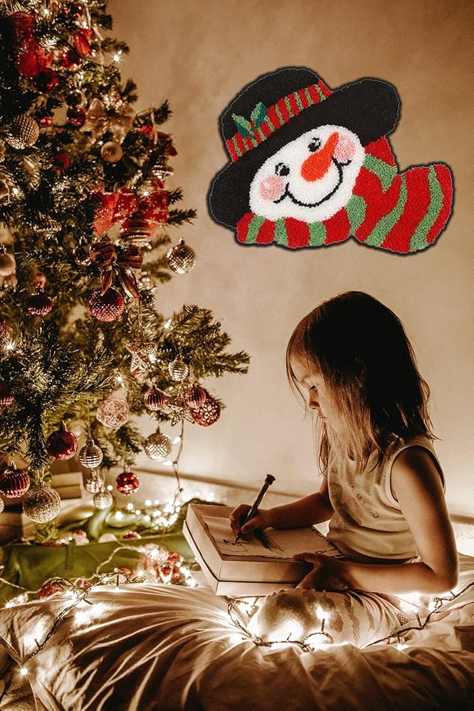 TEZKIM Latch Hook Rug Kits for Adults Kids DIY Christmas Snowman Tapestry Kits with Printed Canvas Doormat Rug Making Kits Needlework Arts Crafts Sewing Carpet Home Decoration 20.5Inch X13.8Inch