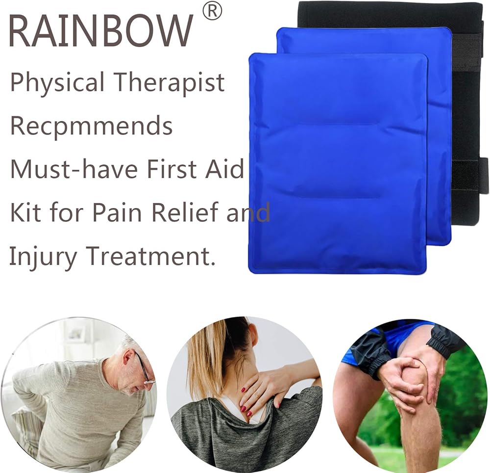 RAINBOW Gel Ice Pack for Back Hip Shoulder Knee, Reusable Ice Packs for Injuries Pain Relief, Heat Cold Compress Therapy Packs for Surgery, Swelling, Bruises Large Cold Pads (11" x 14" - Pack of 2)