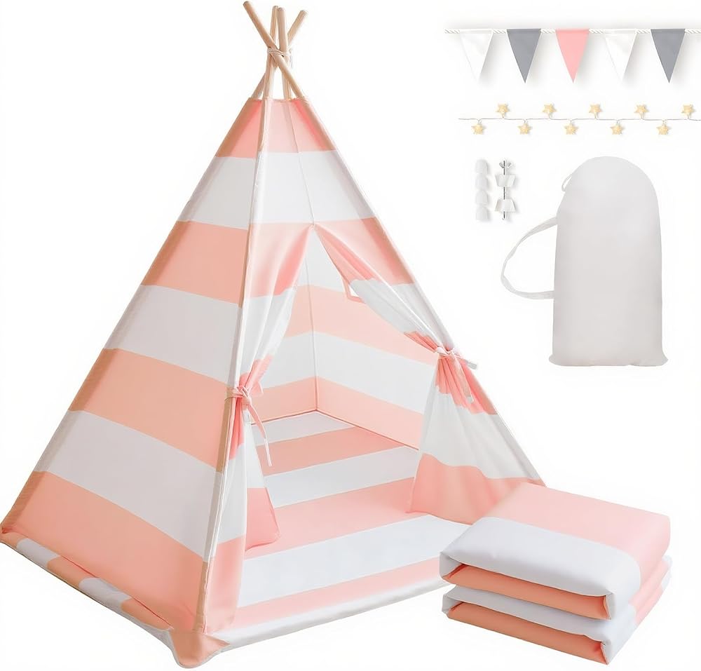THE PERFECT GIFT:Looking for a gift that'll steal the spotlight? This teepee tent is a guaranteed hit! Each purchase comes with exclusive extras that elevate the play experience, adding an extra layer of excitement. Whether it's for Christmas, birthdays, or any special occasion, it's the ultimate present to spark joy and creativity. Don't wait—give the gift of unforgettable fun today!