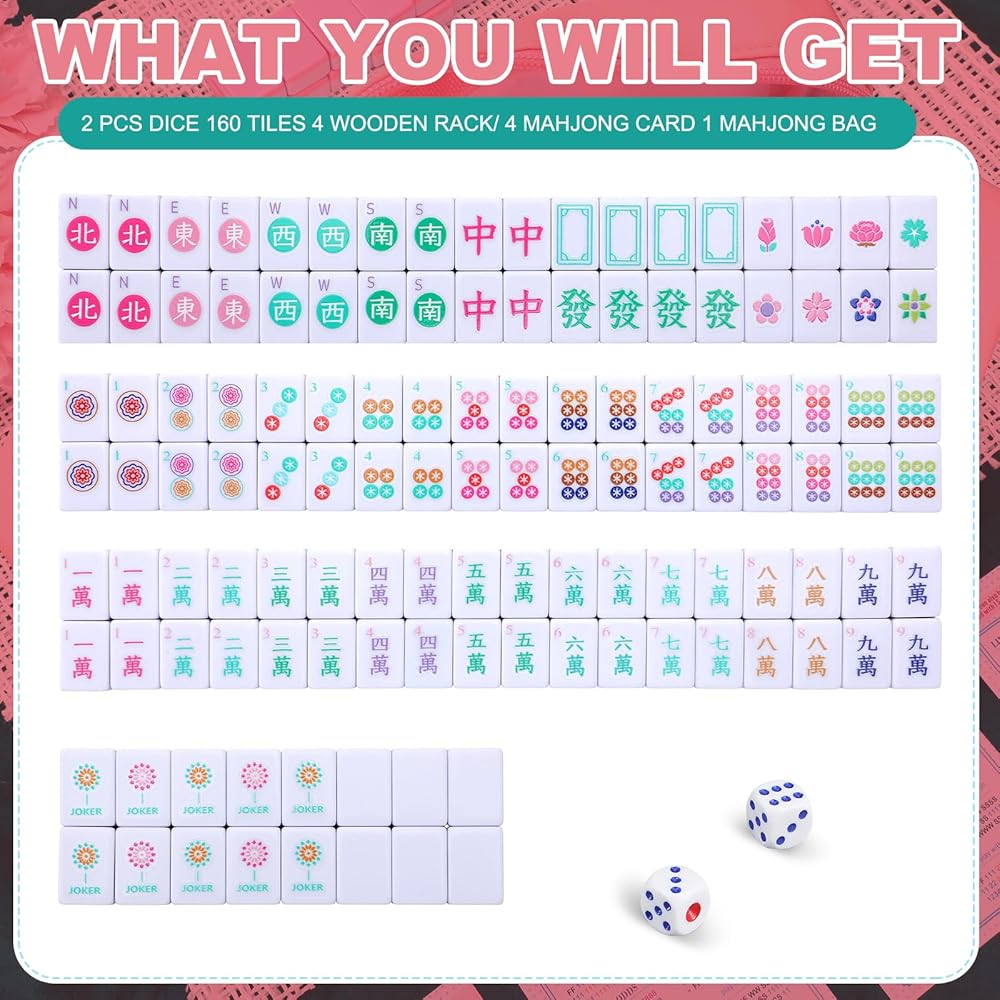 With 4 beginner mahjong rule cards included, this set is tailored to newcomers eager to learn the game. The clear, simple instructions make it accessible and less intimidating, offering a smooth transition into the world of mahjong and encouraging regular play.