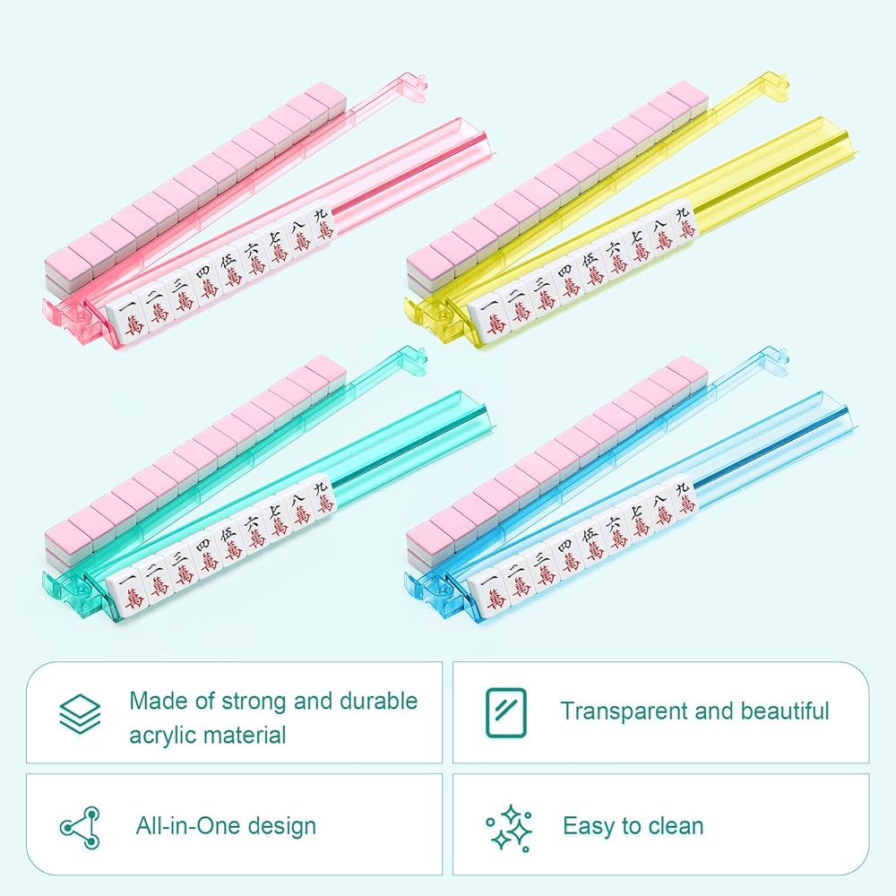 ما تحصل عليه: رفوف Mahjong مع Pushers 4pcs وضع Majiang Byle Holder Acrylic Mahjong Racks Accessories and Gifts
