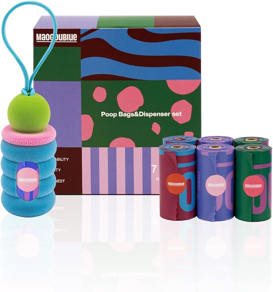 Poop Bags & Dispenser Set: Includes 1 poop bag holder and 7 roll of bags (105 bags total). Each bag measures 13.2 inches × 8.8 inches.*Bag colors are randomly assorted and may differ depending on manufacturing batch.