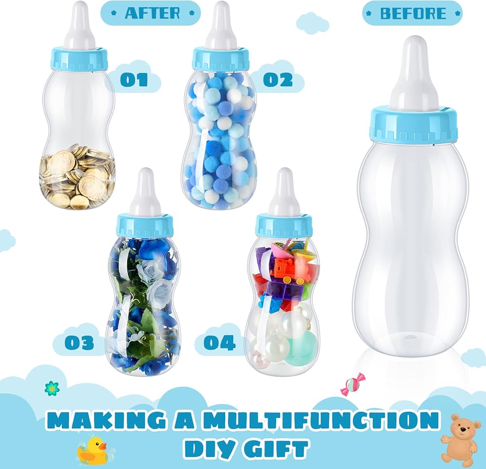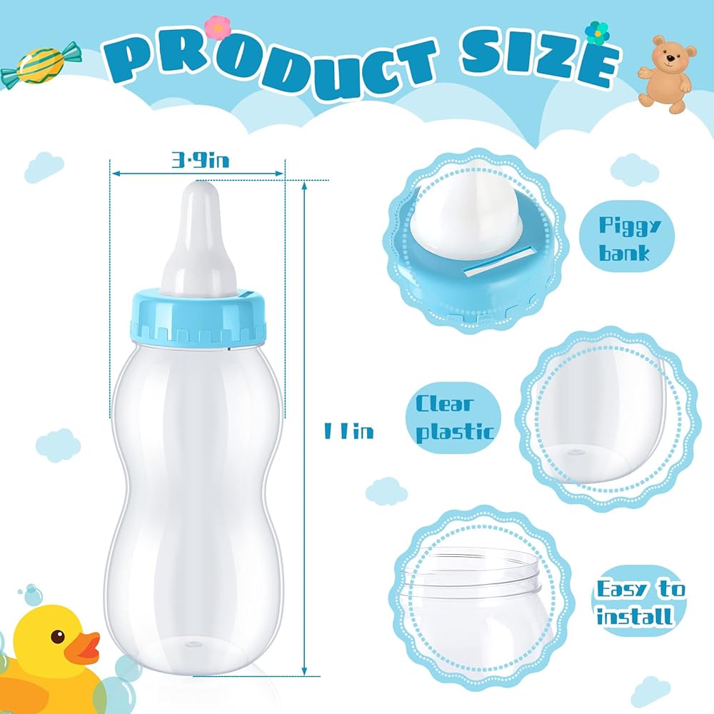 Thoughtful Design: our baby shower bottles adopt nursing bottle shape design, have no extra decorations, cute and lovely, full of innocence and childishness, catering to most boys and girls; With the transparent and visible body, they can clearly display your candies and allow you to see the contents of the baby bottle at a glance; The baby bottles are designed with a slot on the cap for sliding coins or bills, you can also treat them as piggy banks