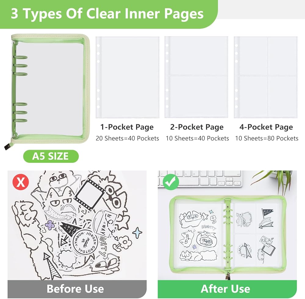 What's Packaged:The sticker organizer binder contains 1 A5 clear binder cover with zipper and 3 types of inner pages (40 sheets with 160 pockets in total). You will receive the sticker storage book for collecting various stickers