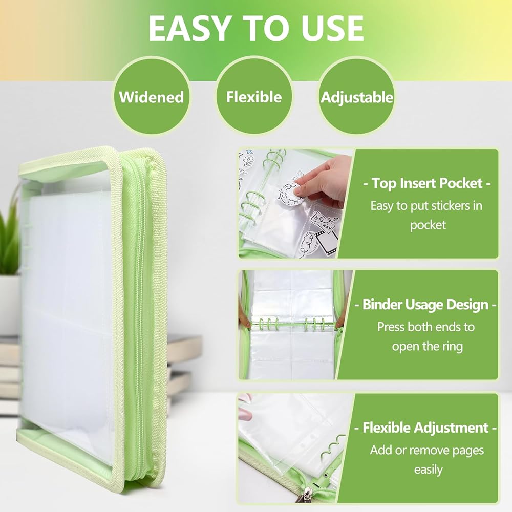 The sticker organizer book's innovative ring binder design allows you to flexibly adjust the inner pages according to your needs. Simply press the ends of the sticker binder to customize your layout. The secure zipper closure of the sticker album ensures stickers remain intact and do not get lost while on the go. Made from practical material, the transparent cover of the sticker collecting book showcases your sticker collections beautifully, providing the utmost care for your beloved items.