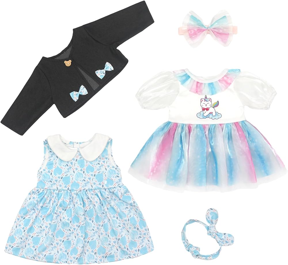 【Package Includes】This baby doll clothes set includes two dress, a coat and two headband, providing a complete outfit combination for 20-22 inch girl dolls. (Doll is not included, only 2 Set doll clothes and accessories)