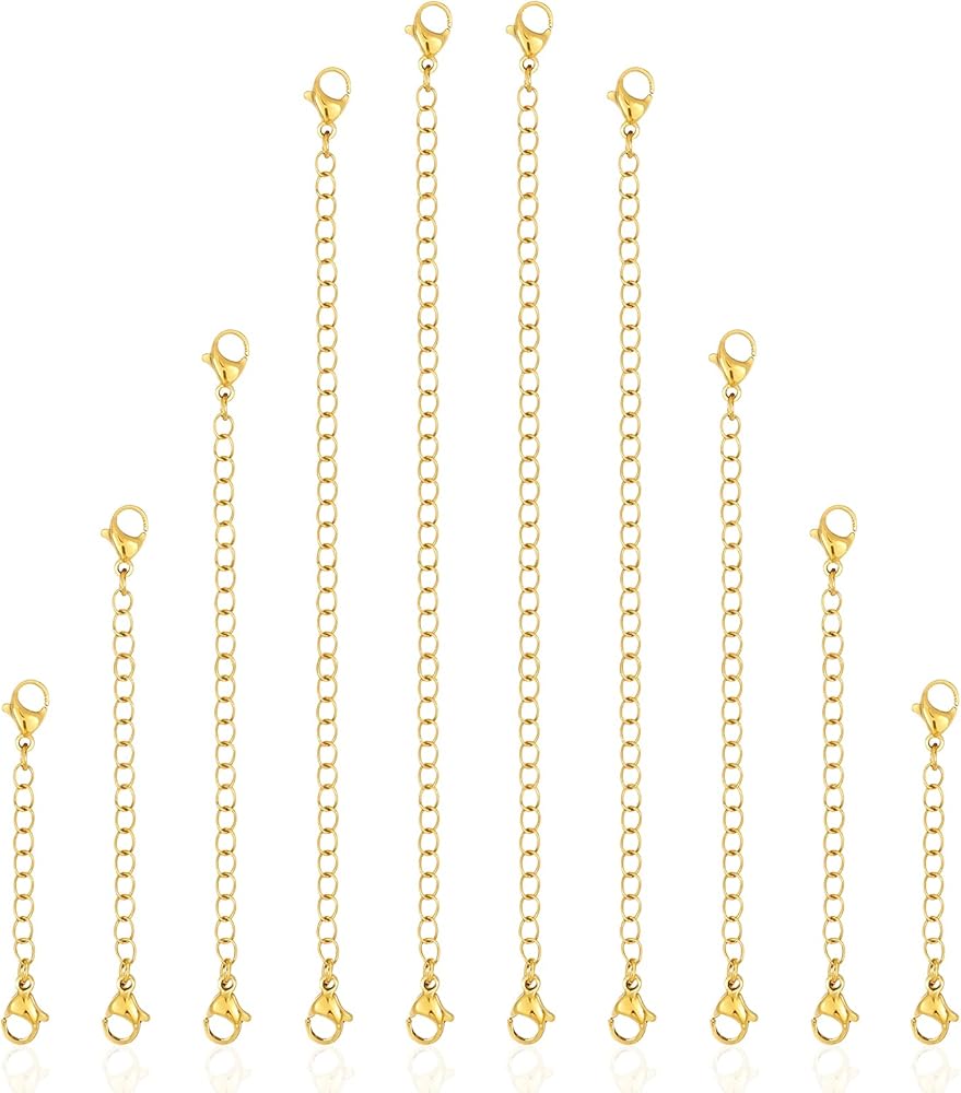 【Versatile Sizing】Our Stainless Steel Necklace Extenders include 10 pieces in assorted lengths (2”, 3”, 4”, 5”, 6”) to accommodate diverse jewelry styles. These Adjustable Chain Extenders allow seamless transitions between choker, pendant, or layered looks for necklaces, bracelets, and anklets.