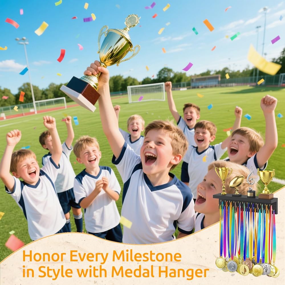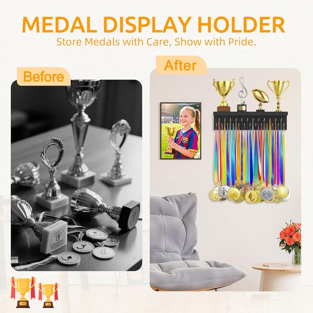 Inspiring and Suprising Present: The race medal display is an exquisite choice to surprise sports fans, atheletes, and teammates during graduation seasons, holidays, etc.; it helps organizing every hard-earned medals and trophies in a dedicated stage
