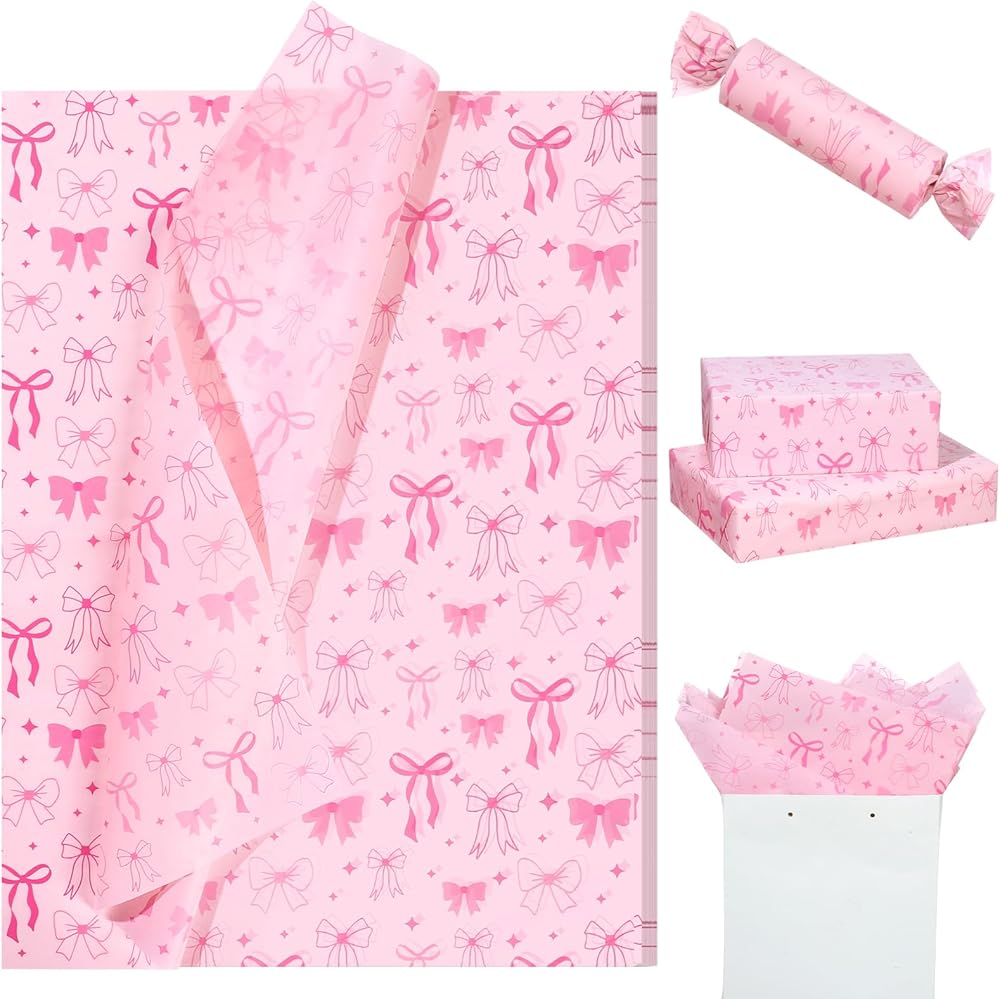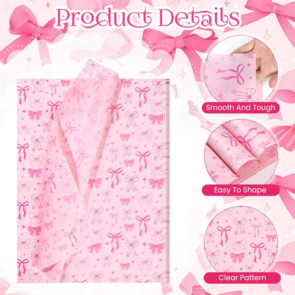 [Wide Application] Upgrade your gift bag, gift basket, gift box, wine bottles, girls gifts wrap, flower bouquet, books, DIY crafting, party decoration, home decor with our coquette pink bow tissue papers for gift bags. these sheets are perfect for adding a touch of elegance to birthdays party, Wedding, Bridal Shower, Bachelorette, Christmas, Anniversary, Valentine's Day, Mother's Day, Holiday, etc.