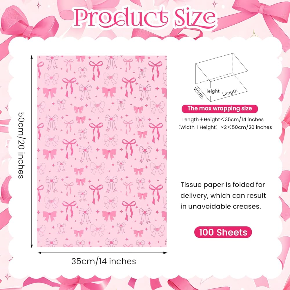 [Package Include] You will get 100 sheets pink bow tissue papers for gift bags. Each tissue size is 50 x 30cm/20 x 14inches. Make any gift bring an even wider smile to the receiver with this special gift wrap paper. This tissue paper makes us a favorite among DIY enthusiasts, gift - givers, and event planners across the United States. Suitable for different groups, such as boys, girls, teenagers, women.