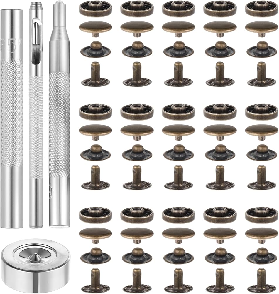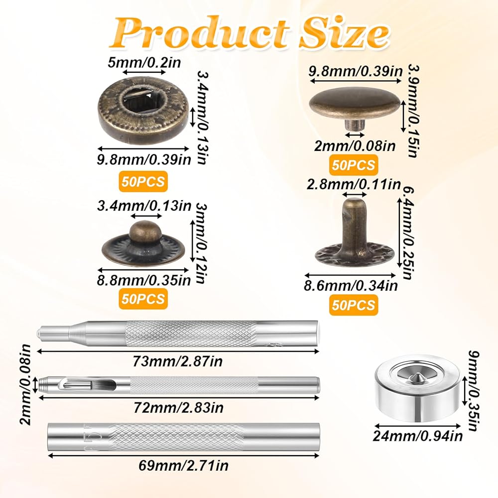 BRASS SNAP FASTENERS KIT: You will receive 50 sets of brass snap fasteners, each set contains 4 components: snap cover, gasket, snap seat and snap post, and we also come with 4 installation tools for your convenience