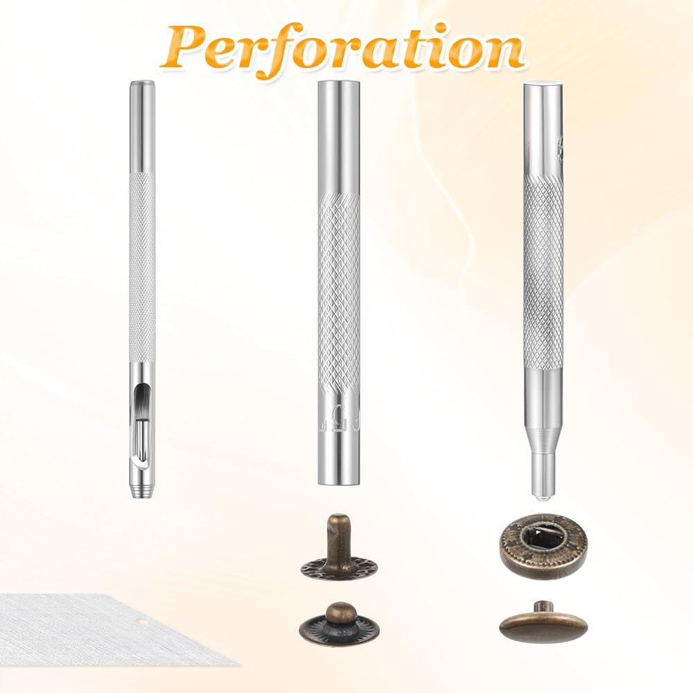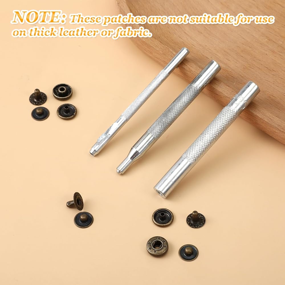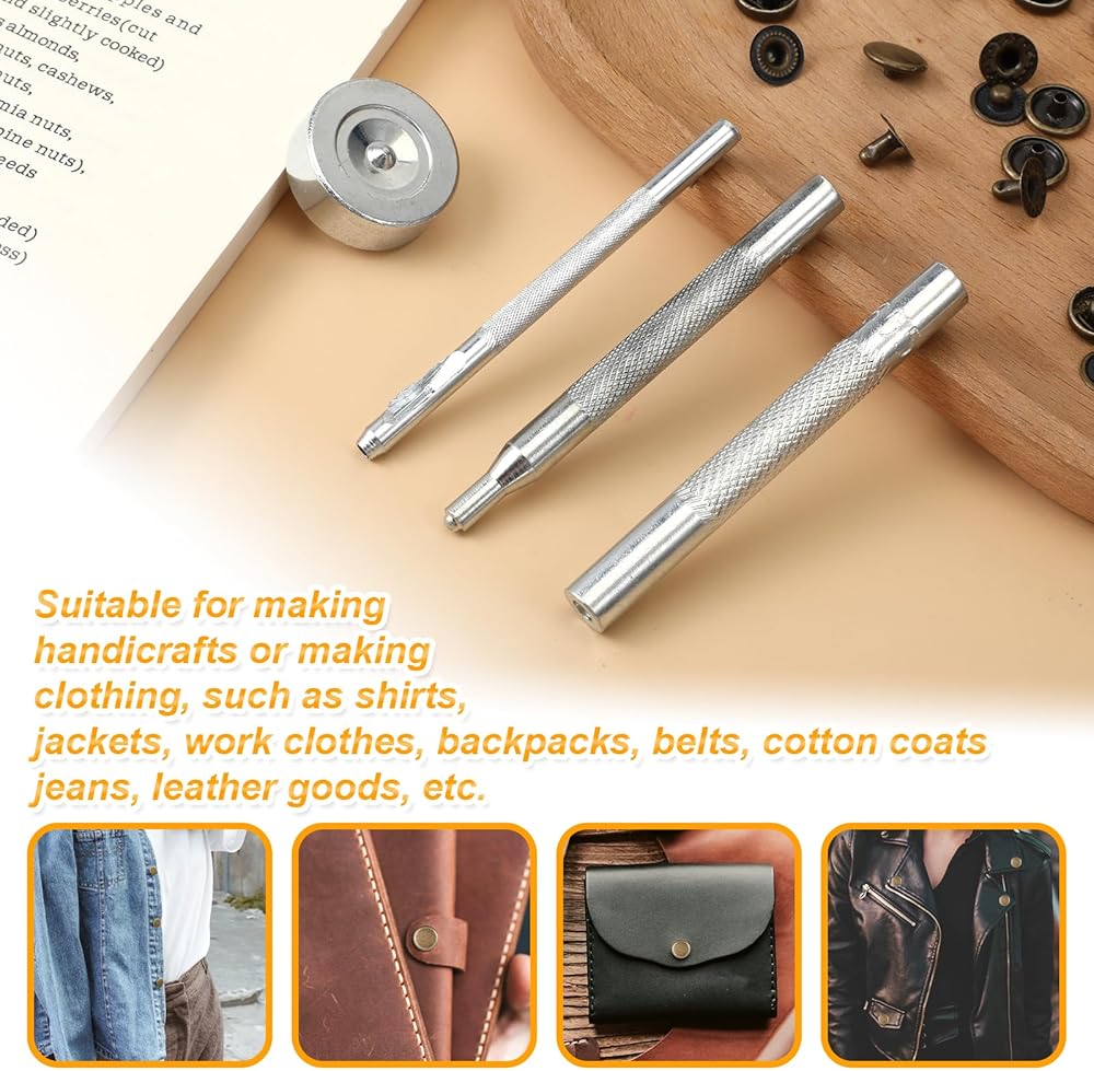 EASY TO INSTALL: This leather snap set has a simple design, use the installation tools we included, after you are familiar with the 4 installation and punching tools, the leather rivets can be easily installed by just tapping hard