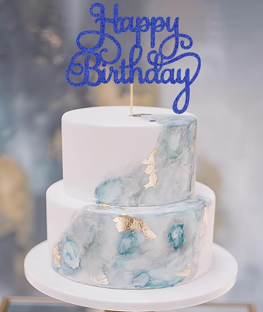 HIGH QUALITY CARDSTOCK - Each happy birthday cake topper is made of light blue 350GMS thick cardboard, which is sturdy and durable, effectively preventing damage during transportation. This happy birthday cake topper is a true golden flash that shines from every angle, providing a unique touch and illuminating the entire gathering venuedecor