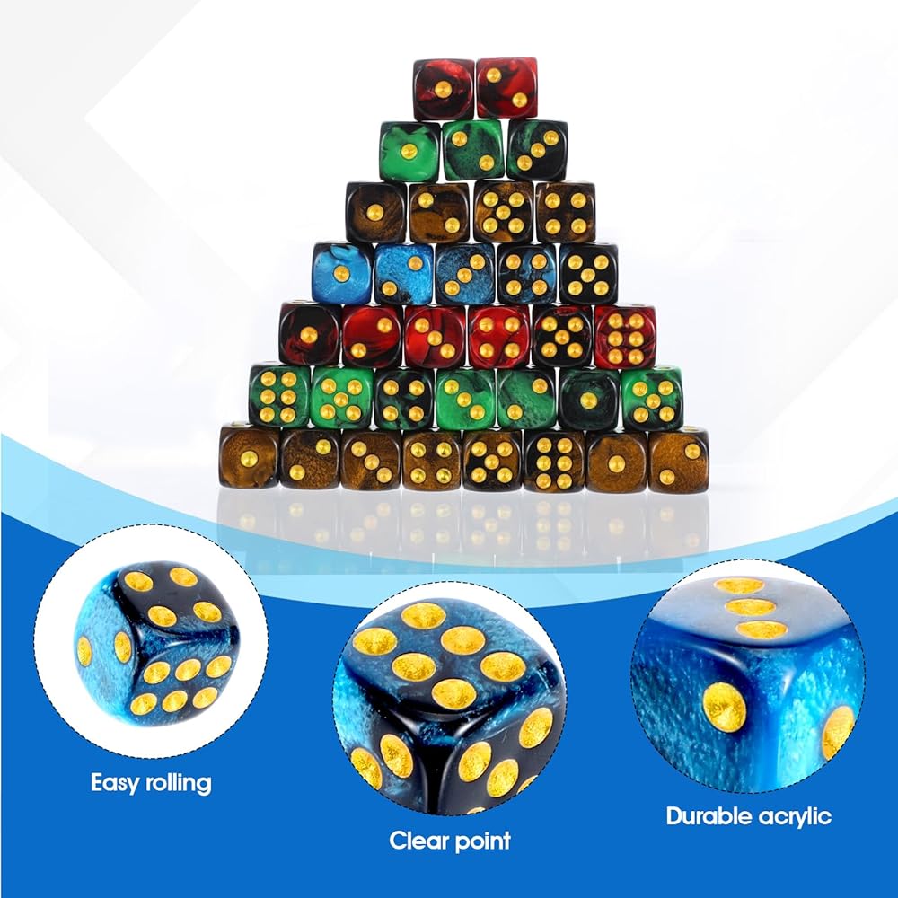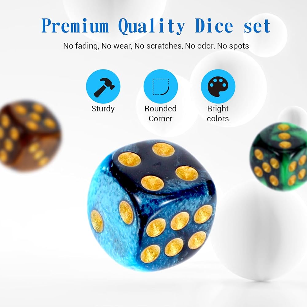 [Premium Material] Crafted from high-quality acrylic, these small dice are built to last. The colored dice feature vibrant shades of blue, green, red, and brown, ensuring durability and style.