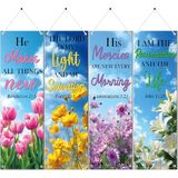 Package Includes: You get a set of 4 church banners, each measuring 183 x 61 cm (about 72 x 24 inches), featuring Spanish Bible verses on themes of love, service, prayer, and growth, along with metal grommets and ropes for hanging