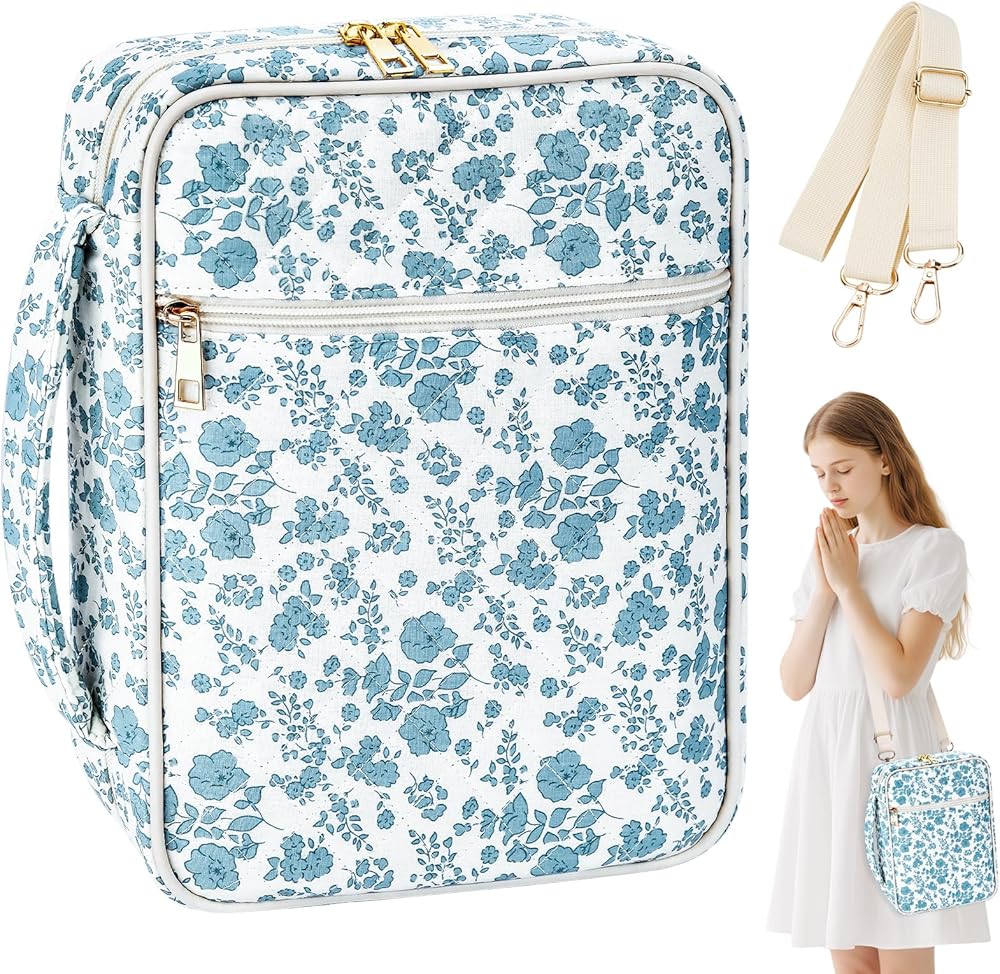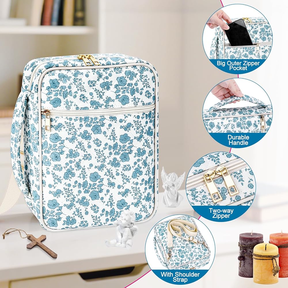 Detachable Strap & Multi-Functional Design: Bible case for girls Includes a removable, adjustable shoulder strap for comfortable crossbody or shoulder wear. Use it as a bible bag for women, a stylish hand-carry tote, book cover, iPad case, or makeup pouch. Perfect for church, Bible study, travel, or daily use.