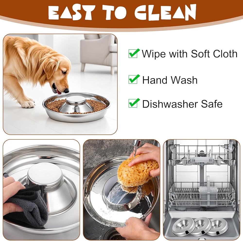 Simplify puppy feeding and promote healthy habits with this set of 4 stainless-steel multi-pet bowls! Each large 10.2-inch tray features divided sections to comfortably feed a litter, prevent food mixing, or slow down eager eaters. The non-skid rubber base keeps the station securely in place during mealtime, while the premium stainless-steel construction is easy to clean, rust-resistant, and more hygienic than plastic. Perfect for weaning puppies, managing multi-pet households, or using as a dedicated slow-feeder. Durable, practical, and designed for pet safety, this versatile feeding solution grows with your furry family's needs.