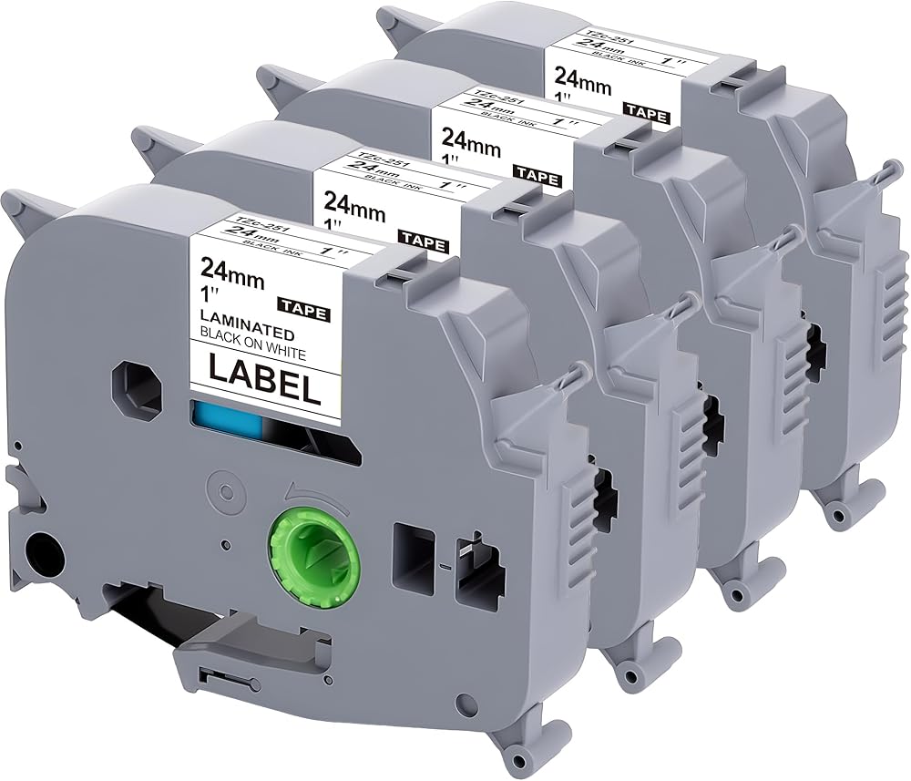 Weemay TZ Tape 24mm 0.94 Laminated White TZe-251 Compatible for Brother P Touch Label Tape 24mm Black on White TZc251 TZ251 TZ 251 for PT-P700 PT-P750W PT-D600 PT-P900W Printer (4 PK, 1 in x 26.2 ft)