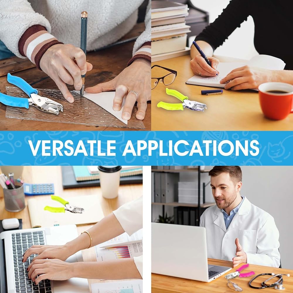 • Abundant Quantity & Vivid Colors: You'll get 12 single hole punchers in 3 colors (yellow, blue, pink), 4 of each. Made of rubber + iron, sized 13.5cm/5.3in*6.5cm/2.6in*2cm/0.8in. These hole punchers offer diverse choices for your crafting, office, or home use, meeting various needs easily