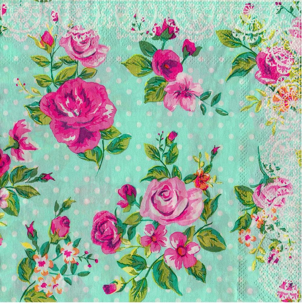 Unique print:Those floral printed napkins printed four sided when opened up completely. Group together with plates and trays for a perfect party accent every time.
